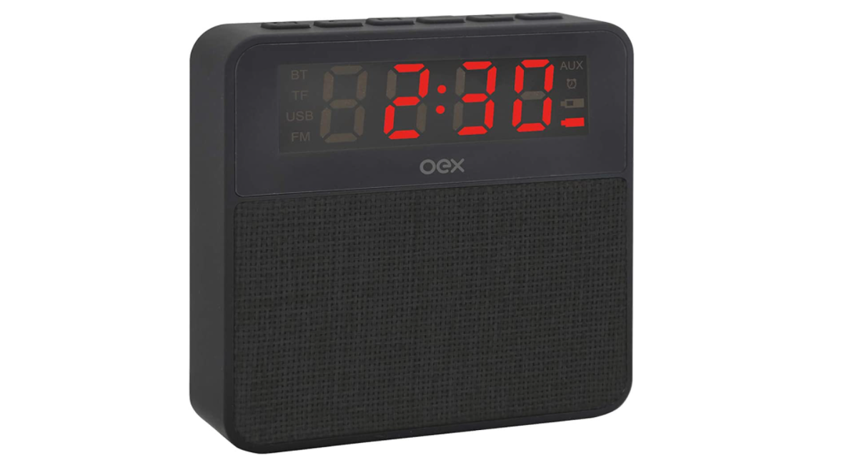 Com Bossui bluetooth, tempo de reprodução de 8 horas e sintonizador de FM digital, o item também conta com visor LCD com iluminação, além de cinco botões para gravar rádios predefinidas.