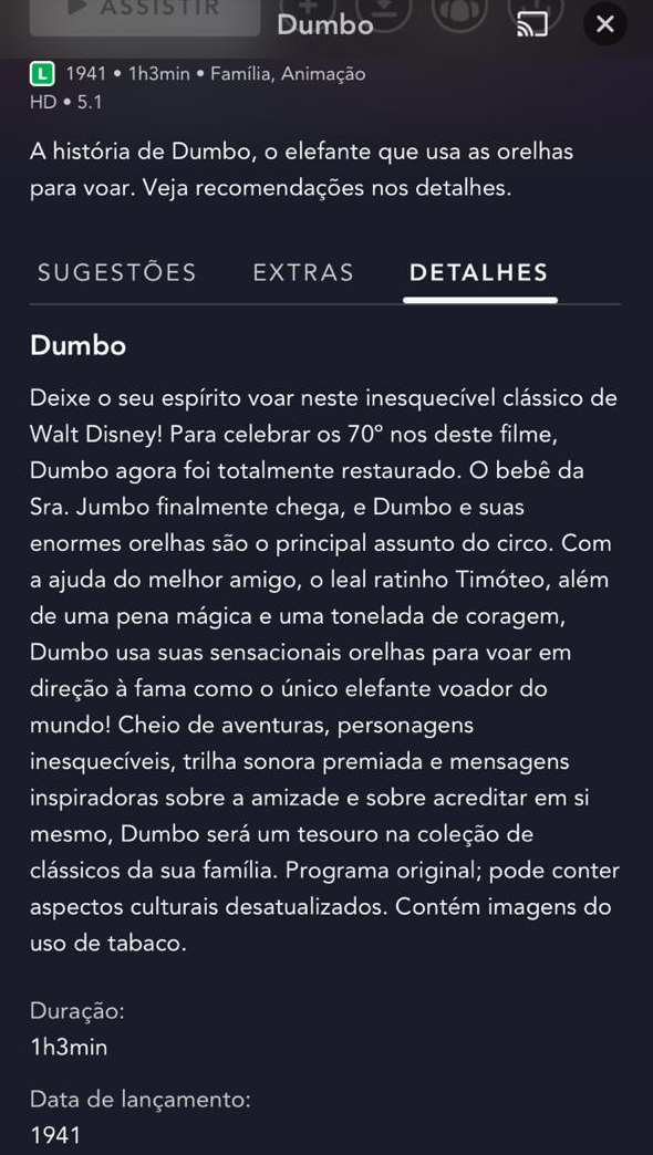 Entretanto, no momento desta publicação, a versão brasileira da plataforma ainda não contém o alerta. A assessoria da Disney confirmou a implementação da medida, sem informar qual o conteúdo oficial do aviso em português. O que consta, atualmente, são os dizeres “pode conter aspectos culturais desatualizados” nas sinopses dos clássicos:
