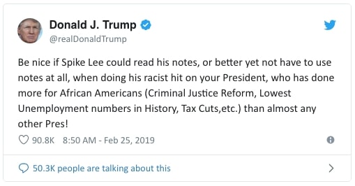Donald Trump critica discurso de Spike Lee no Oscar 2019