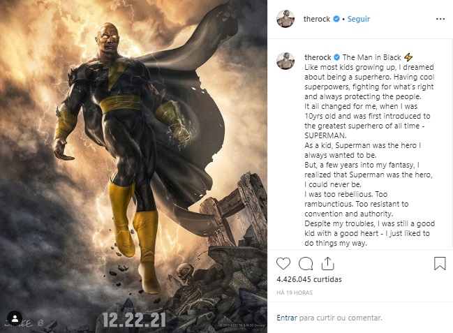 The Rock também escreveu que enxerga muitas semelhanças entre os dois personagens e agradeceu a oportunidade de assumir um papel diferente de tudo que já interpretou na carreira.
