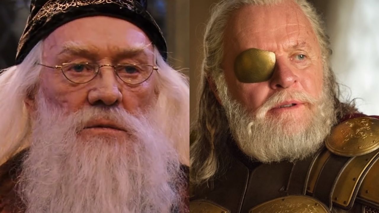 Anthony Hopkins já interpretou o icônico serial killer Hannibal Lecter e o deus nórdico Odin no MCU – neste papel, podemos ver que o ator não teria problemas em adotar o visual com barba de Alvo Dumbledore. E, em 2019, Hopkins foi aclamado com a performance em Os Dois Papas, indicado a três categorias do Oscar 2020. (Fotos: Reprodução / Youtube)
