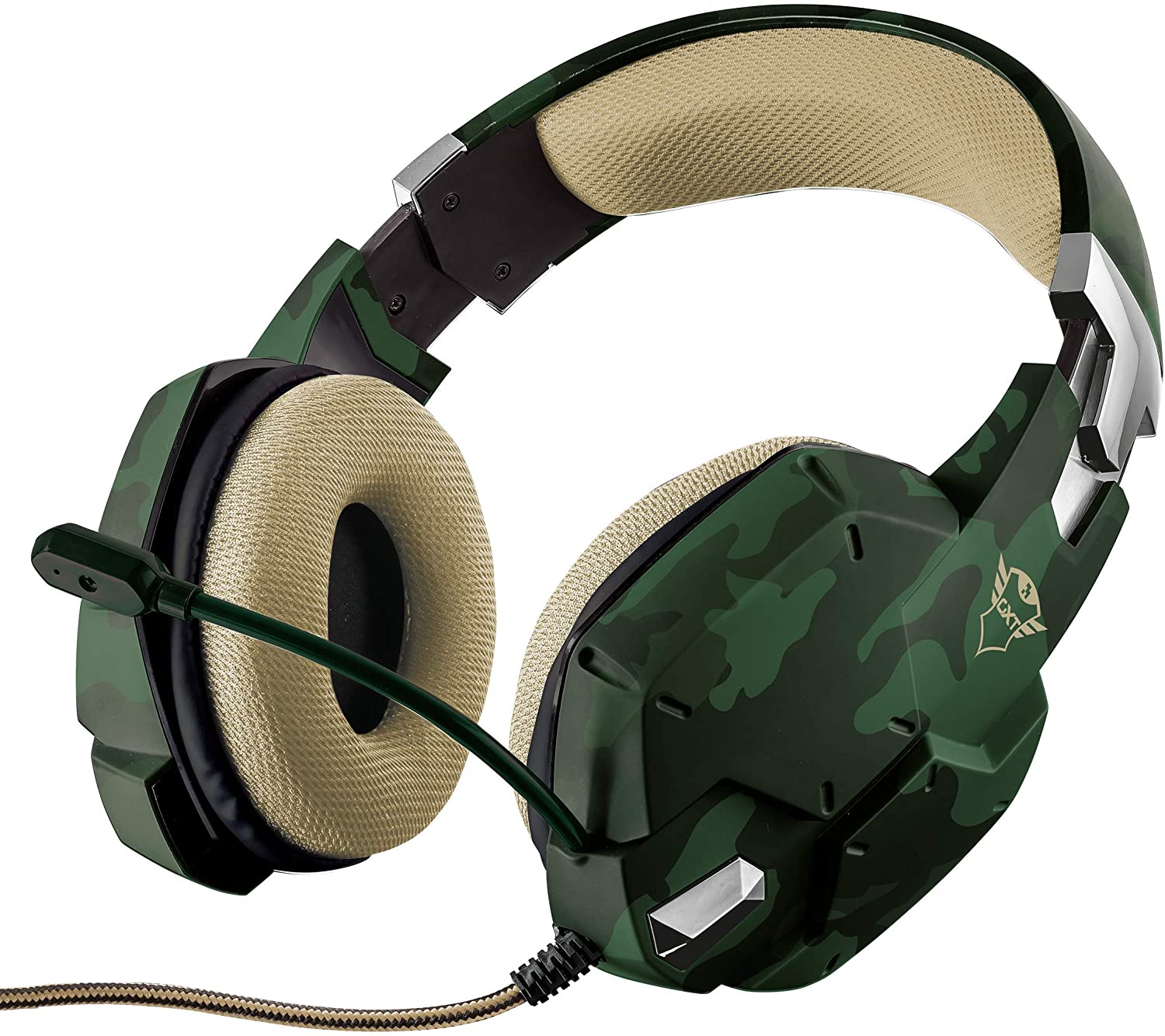 6. Headset Gamer Carus Jungle Camo, Trust: com alça ajustável e microfone flexível, este headset gamer é super confortável e garante qualidade de som com graves potentes e intensos.  – https://amzn.to/3ngEMNu
