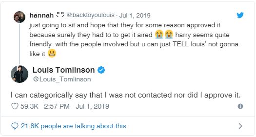 Na última terça, 02, Louis Tomlinson anunciou em seu Twitter que não foi consultado sobre a o uso da sua imagem na nova produção da HBO, Euphoria.
