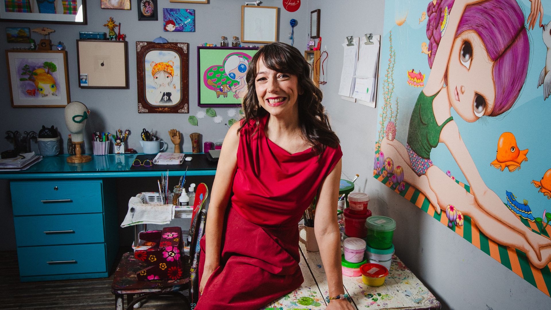 Começando com a ideia de portais como símbolos de travessia e transformação, a mostra propõe conexões entre diferentes dimensões da experiência humana. Conhecida por criar um universo visual lúdico, delicado e profundamente autoral, Pandolfo apresenta, desde o primeiro portal da exposição — que reúne obras inéditas e trabalhos já consagrados de sua trajetória — uma experiência que convida o visitante a fugir do ritmo acelerado da cidade e atravessar passagens simbólicas entre o cotidiano e dimensões de encantamento. A partir de então, pelo caminho, surgem jardins mágicos, rios que desafiam a lógica natural, criaturas híbridas, árvores simbólicas que evocam abrigo e origem, além das icônicas meninas de olhos expressivos.