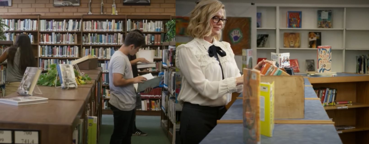 Por exemplo, eles usam a imagem de uma biblioteca real para localizar a cena, mas, assim que os personagens aparecem, o espaço muda completamente.