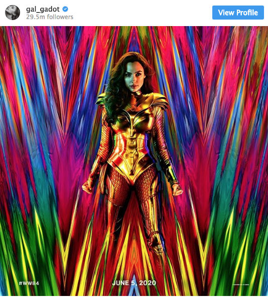 Na última quarta, 5, Gal Gadot revelou no Instagram o primeiro pôster de Mulher-Maravilha 1984, próximo filme da heroína da DC que tem estreia prevista para 5 de junho de 2020.