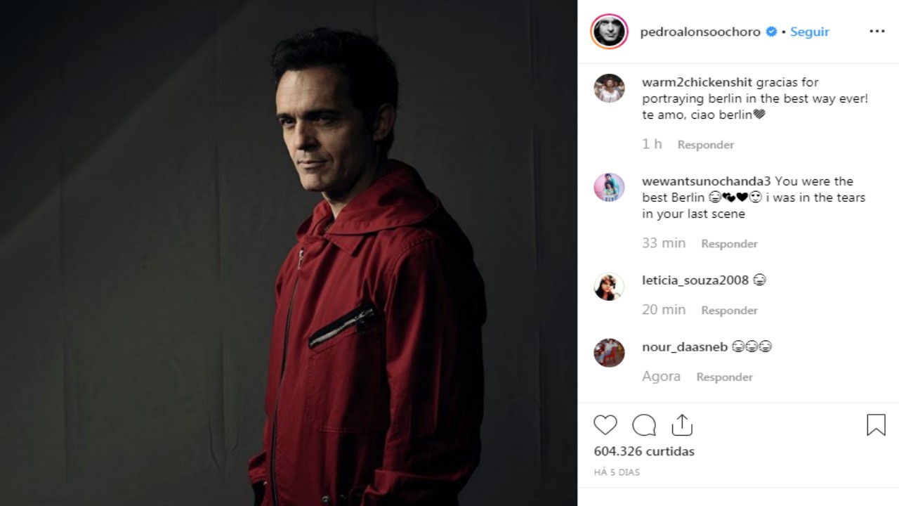 O ator Pedro Alonso, que interpreta o polêmico Berlim na série, publicou no Instagram uma foto caracterizado como o personagem, junto com o comentário “Bye,Bye, Berlim. Coração louco.”