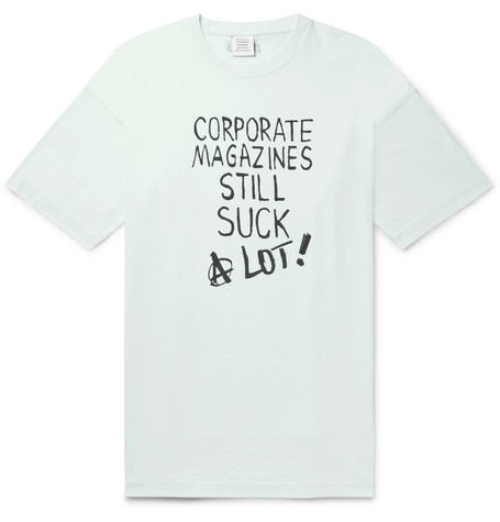 “Em 1992 foi o jeito do Sr. Kurt Cobain de torcer o nariz para as instituições com a capa da Rolling Stone – ‘revistas corporativas ainda são uma porcaria’ – e em 2019 é a vez do Sr. Demna Gvasalia [estilista] de fazer o mesmo no desfile da Vetements. Esta camiseta de algodão traz o posicionamento com a adição de um símbolo anarquista, e foi incluída na parte ‘Anti-Social’ da coleção”, diz a descrição da peça.