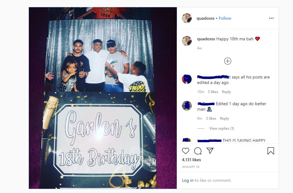 A “confusão” surgiu de uma publicação feita no Instagram de Bayles (@quadosss) em 18 de janeiro de 2020, na qual o menino está comemorando o aniversário de 18 anos de um amigo da família.