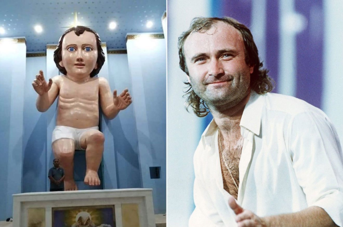 Igreja constrói estátua gigante do menino Jesus que parece Phil Collins; veja