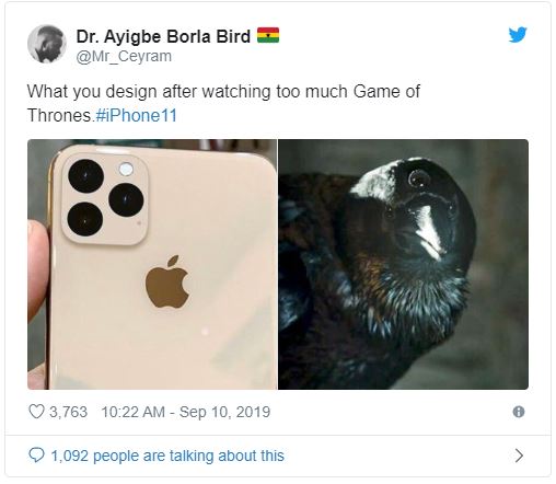 A Apple revelou na terça-feira, 10, a nova versão do iPhone, no evento anual da linha de celulares promovido pela empresa. Com diversas fotos do aparelho circulando nas redes sociais, fãs de Game of Thrones foram capazes de encontrar semelhanças entre o iPhone 11 e o Corvo de Três Olhos, uma figura recorrente da série da HBO.