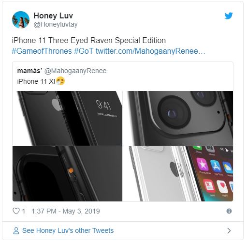 “iPhone 11 edição especial Corvo de Três Olhos,” disse outra fã.