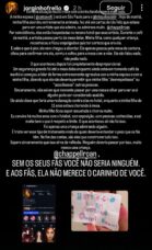 A situação, conforme o relato do atleta, teria abalado a menina, que teria deixado o local chorando ao lado da mãe. Indignado, Jorginho se manifestou publicamente. “Sinceramente, não sei em que momento passar por uma mesa e olhar para ver se é alguém é considerado assédio”, escreveu. Em outro trecho, também criticou a postura da equipe da artista: “É triste ver esse tipo de tratamento vindo de quem deveria entender o peso que os fãs têm. Sem os seus fãs você não seria ninguém”.