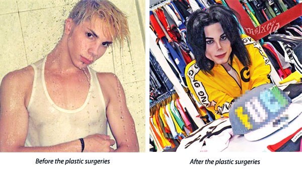 Muitas pessoas, inclusive, gastaram fortunas para se parecem com Michael Jackson, como o argentino Leo Blanco, de 23 anos, que se submeteu a diversos procedimentos estéticos no nariz, bochechas, lábios e olhos para ficar parecido com o cantor. Veja a transformação: