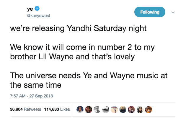 No começo do ano o músico produziu os projetos Daytona (Pusha-T), Nasir (Nas), KTSE (Teyana Taylor), além de lançar seu álbum próprio ye e Kids See Ghosts, em parceria com Kid Cudi.