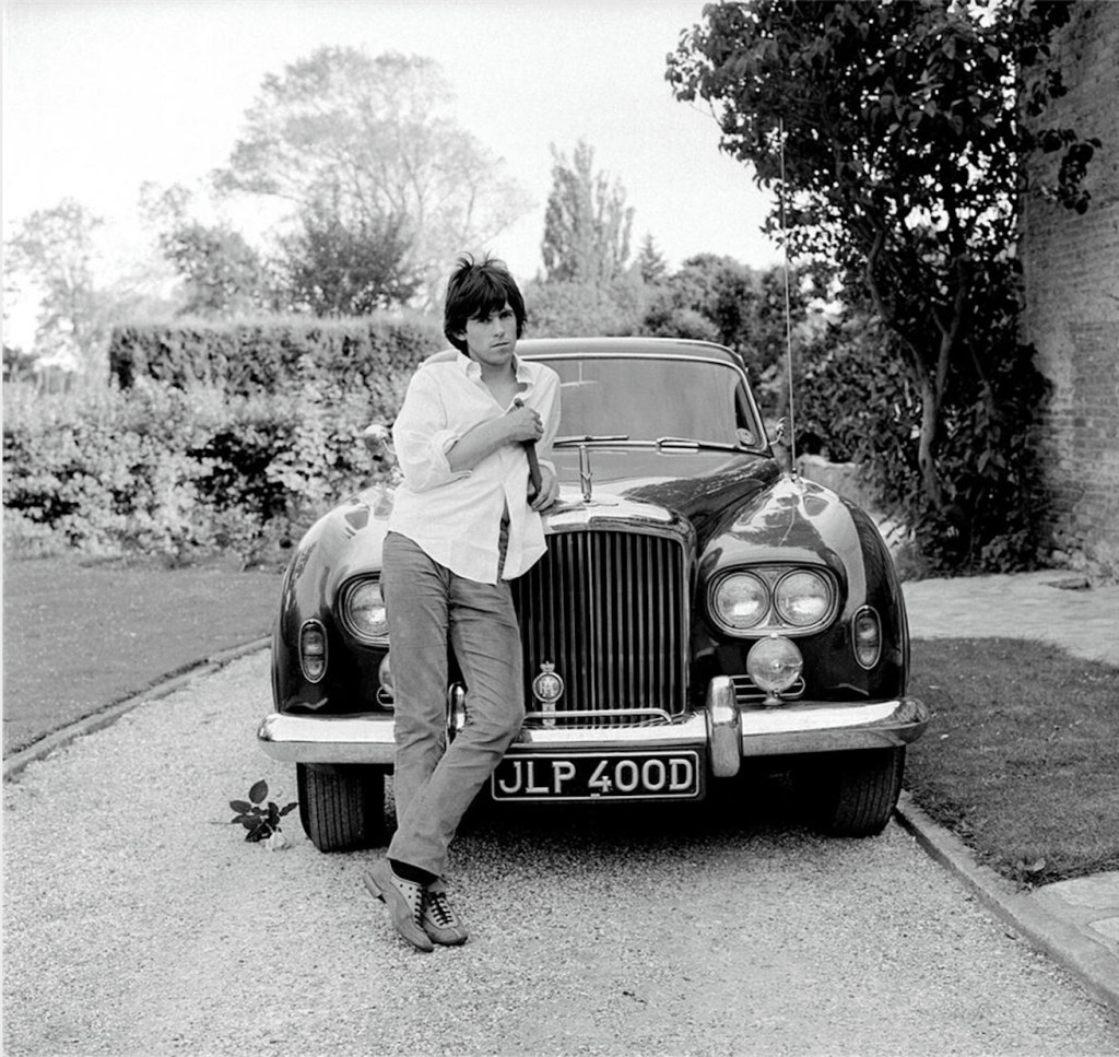 Keith em sua casa Redlands, no verão de 66. Seu lindo carro Bentley, conhecido por Lena Azul, em homenagem à Lena Horne. Ele segura uma das facas de sua coleção, o que leva a aparência de “em casa” ao limite.
