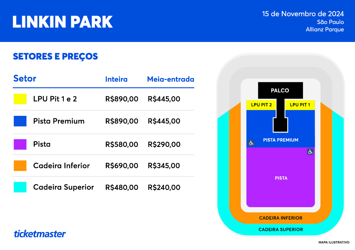 Os ingressos custarão a partir de R$ 240. Confira tabela de preços abaixo: