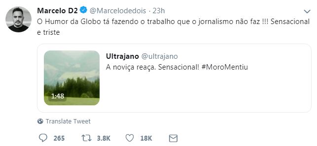 “O Humor da Globo tá fazendo o trabalho que o jornalismo não faz !!! Sensacional e triste”, ele publicou no Twitter. Veja abaixo: