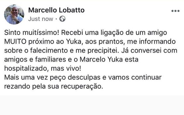 Mas, minutos depois, o colunista Leo Dias, do jornal O Dia, informou que o músico está internado em estado grave.