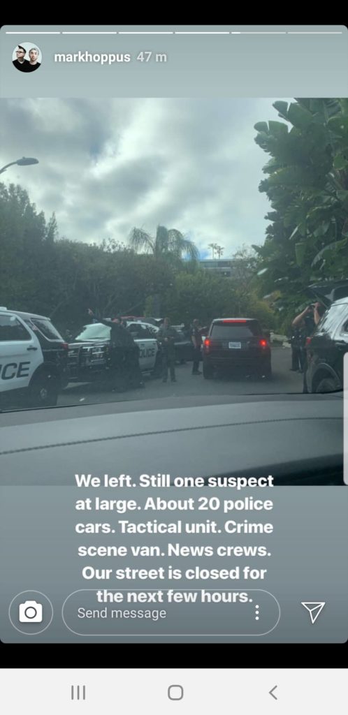 Hoppus postou uma série de stories na rede social dizendo que o roubo não havia dado certo e que os suspeitos estavam escondidos próximo de sua residência. O músico vive com sua esposa Skye Everly e seu filho Jack em Beverly Hills, na Califórnia.
