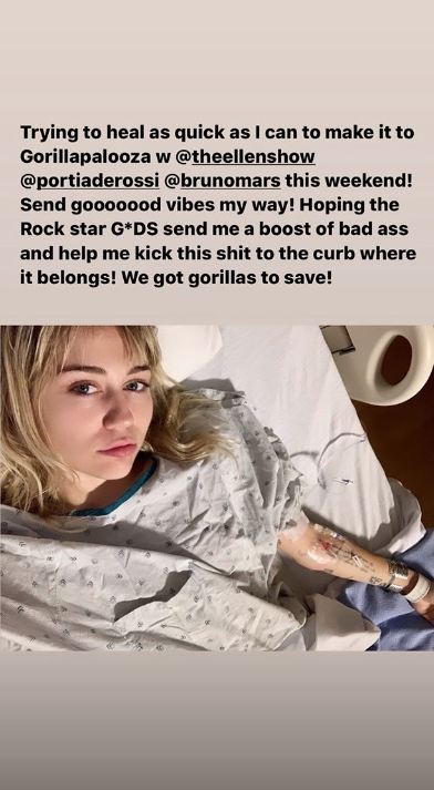 “Tentando melhorar o mais rápido possível para chegar ao Gorillapalooza”, escreveu a cantora.