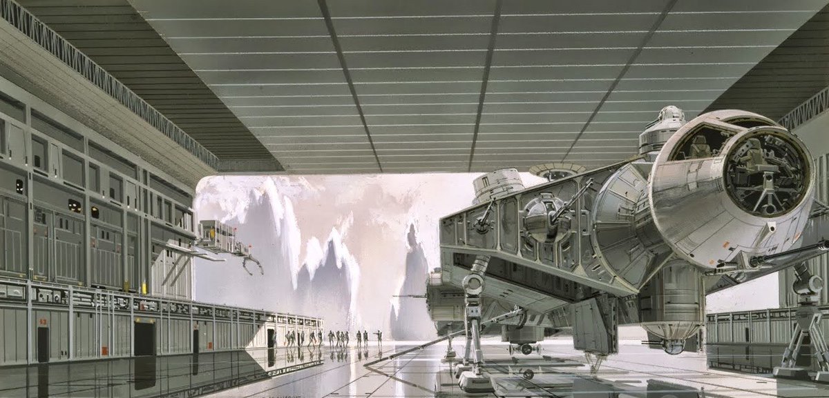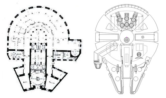 O ilustrador Ralph McQuarrie fez vários esboços da Falcon recusados por George Lucas. A primeira nave era muito mais esguia e, apesar de ter sido substituído, o desenho foi aproveitado para a Tantive IV, a nave de Leia.