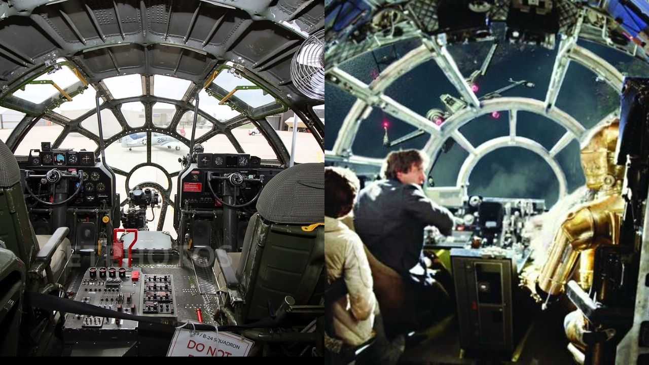 O cockpit da Falcon imita de maneira bem parecida o avião da Segunda Guerra Mundial Boeing B-29 Superfortress, com a janela circular e cabine para até 4 tripulantes.