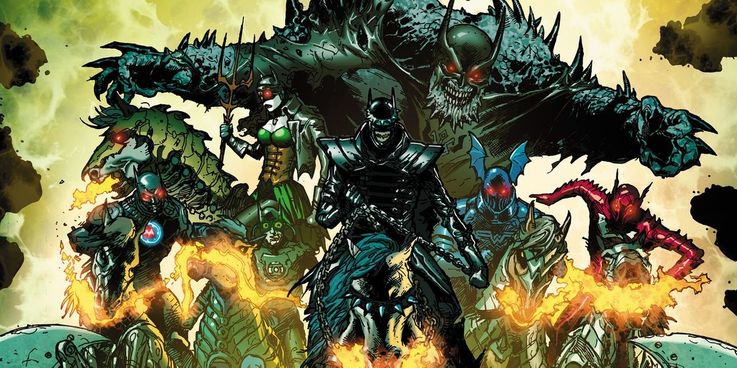 O ponto alto de Snyder e Capullo com o Batman. Esse mega-evento colocou a Liga da Justiça contra vários Batmans alternativos, assustadores e malignos controlado pelo vilão supremo Barbatos, um Batman-Deus do Mal.