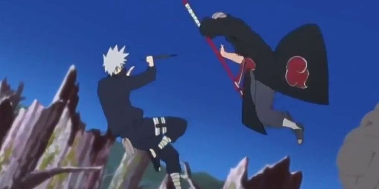 Outro membro da Akatsuki, Hidan tinha habilidades parecidas com práticas vudu. Kakashi revidou aos ataques no adversário de maneira inteligente, mas não conseguiu acompanhar o ritmo da luta e teve que recuar e reagrupar com os demais heróis.