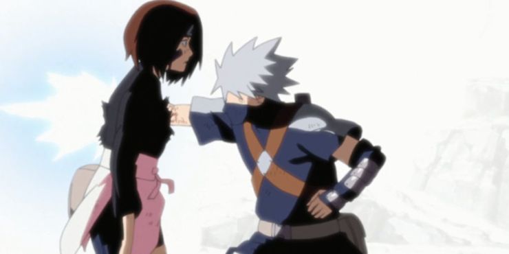 Quando era um aprendiz, Kakashi e a colega de equipe Rin são emboscados pela organização Kirigakure. Os ninjas aprisionam um demônio na garota, o que enfurece Kakashi e o leva a atacar inconsequentemente o inimigo. Por acidente ele mata a amiga, despertando o poder do Mangekyō Sharingan, o olho mágico da família Uchiha, que aniquila todos os inimigos, deixando-o desmaiado.