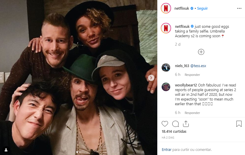 A conta da Netflix no Instagram divulgou nesta quarta, 23, uma foto do elenco da série The Umbrella Academy. Nela, a plataforma de streaming revelou que a segunda temporada do programa chegará em “breve”.