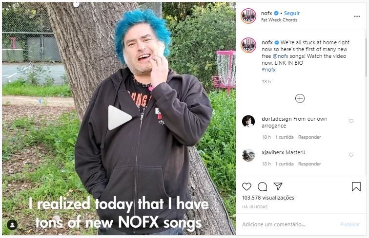 “Percebi que temos toneladas de novas músicas e vídeos do NOFX que não serão lançadas até o final do verão”, disse ele no vídeo. “Mas, como todo mundo fica entediado em casa, vou lançar várias músicas agora para que as pessoas possam apreciá-las antes de estarmos todos mortos.”
