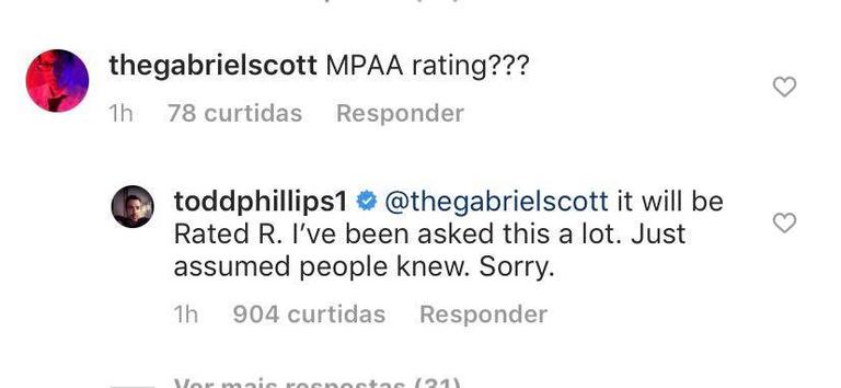 No último domingo, 17, Todd Phillips, diretor do filme Coringa, publicou um detalhe sobre o longa em sua conta no Instagram. Ao responder um fã que perguntou qual seria a classificação indicativa do filme, ele revelou que ele será para maiores de idade.
