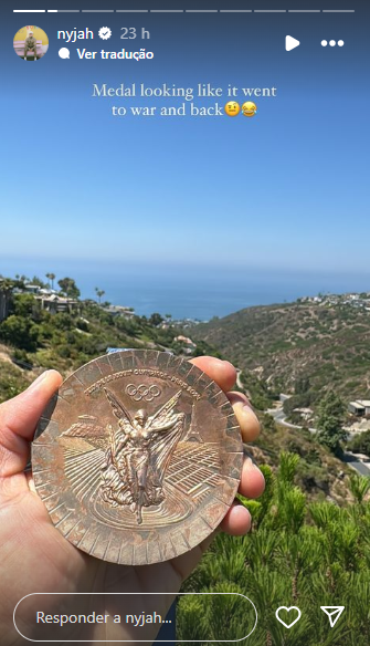 Huston mostrou em seu Instagram, porém, que o acessório já está se deteriorando. “Certo, essas medalhas olímpicas parecem ótimas quando são novinhas”, compartilhou o atleta. “Mas depois de deixá-la contra minha pele com um pouco de suor e depois permitir que meus amigos a usassem no fim de semana, elas não parecem ter uma qualidade tão alta como você imaginaria.”