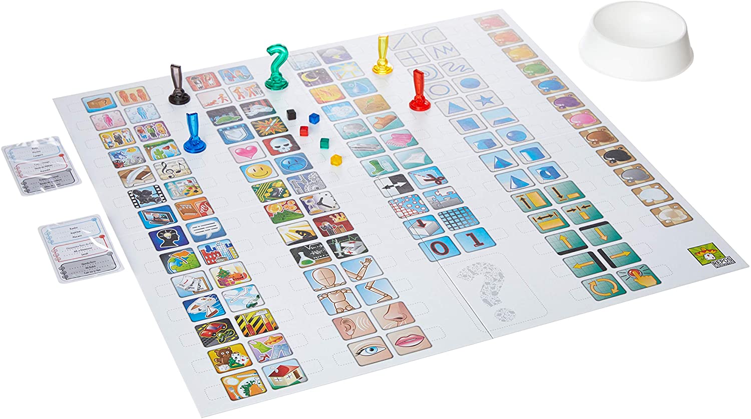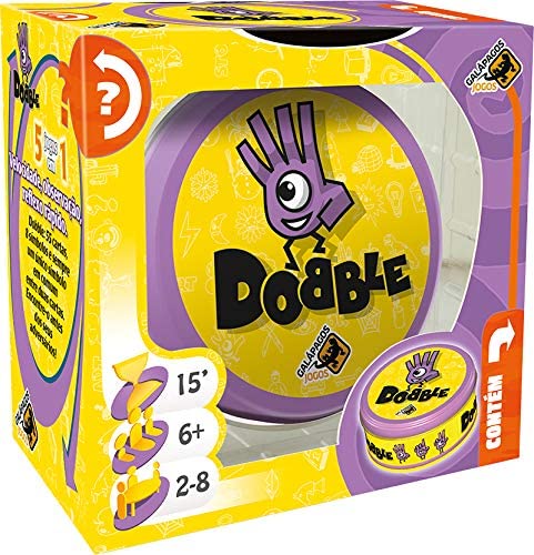 Baseado em uma equação matemática, o jogo traz 55 cartas, cada uma com oito figuras diferentes desenhadas. Todas as cartas têm, entre si, um desenho em comum (só um por cada). São cinco maneiras de jogas, todas envolvem encontrar, rapidamente, a imagem repetida. – https://amzn.to/2Uplf1H