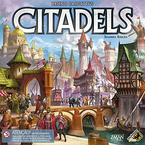 Este jogo é complexo, competitivo e estratégico. Tem cartas de personagens (cada uma com um “poder”), cartas de prédios e moedas. O objetivo é usar moedas para comprar prédios e construir a melhor cidade. Cuidado, porém, com os outros jogadores: talvez, o ladrão roube todas as suas moedas, ou o assassino te mate e você não consiga jogar. Ou, quem sabe, alguém não destrua o que você já fez? – https://amzn.to/2QMHtIz