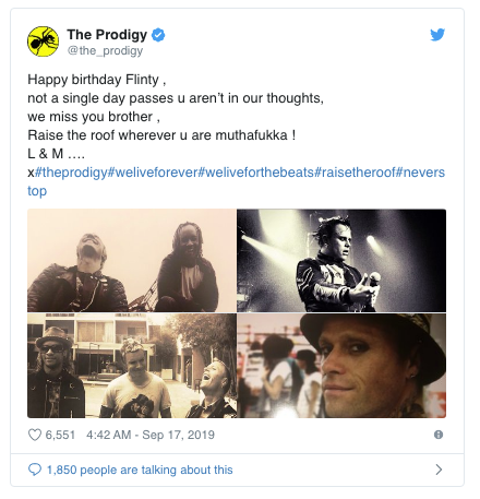 Liam Howlett e Maxim Reality, ambos integrantes da banda The Prodigy, homenagearam Keith Flint, ex-vocalista da banda nesta terça, 17; essa seria a data na qual o cantor completaria 50 anos de idade.