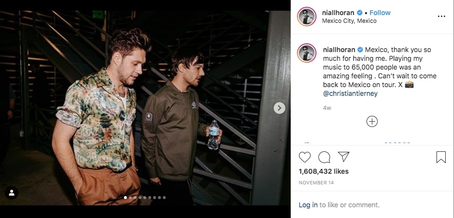 Louis e Niall são provavelmente os dois melhores amigos do One Direction. Em 14 de novembro deste ano, o irlandês compartilhou uma foto deles no Instagram no qual os dois estavam juntos nos bastidores do Premios Telehit, no México. E ainda, a dupla tocou “Little Black Dress“- música do 1D -, juntos no palco. Uma colaboração da banda em 2019?