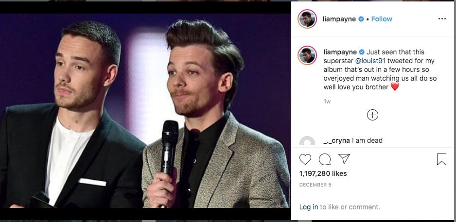 Enquanto isso, Liam parece adorar Louis e publicou uma foto no Instagram quando os dois se apresentaram no mesmo festival. Uma outra publicação mais recente mostra o orgulho do músico sobre a carreira solo do ex-companheiro de One Direction. Assim como o restante da banda, o britânico parece não manter nenhum contato com Zayn, embora tenha citado ele nos agradecimentos do primeiro disco, LP1, lançado no dia 6 de dezembro.