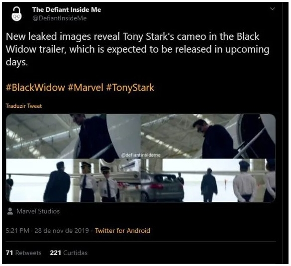 Nos últimos dias, supostas cenas vazadas de Viúva Negra circularam pela Internet, criando rumores de que Robert Downey Jr. reprisaria o papel de Tony Stark nas telinhas, possivelmente como flashback.