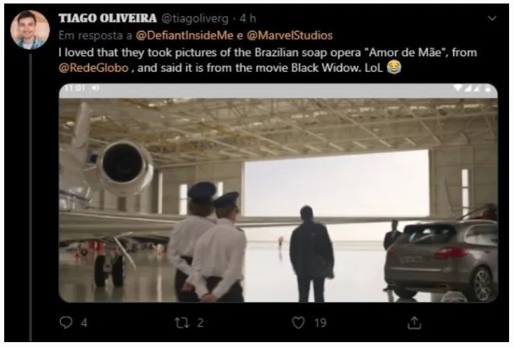 A confusão foi desmascarada pelo usuário @thiagoliverg no Twitter, que notou a presença de Benício e comentou: “Achei hilário que estão compartilhando cenas de Amor de Mãe e dizendo que são imagens vazadas de Robert Downey Jr. em Viúva Negra.”