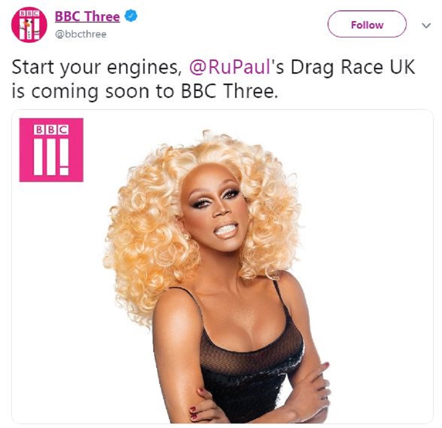 “Liguem seus motores, RuPaul’s Drage Race Grã Bretanha está chegando ao BBC Three”.