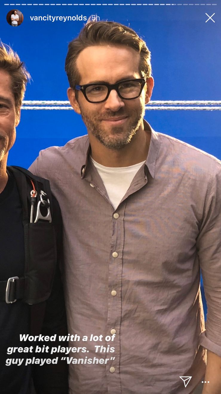 Para acompanhar uma foto do set de filmagens do longa, postada nos stories do Instagram, na qual aparece acompanhado por menos da metade de Pitt, Reynolds escreveu: