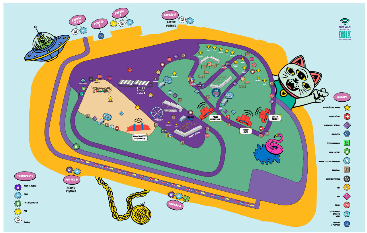 Lollapalooza tem quatro palcos, e cada dia de festival conta com mais de 20 bandas. Para você não ficar na área enorme de circulação do Autódromo de Interlagos, confira o mapa do festival (abaixo) e estude o line-up do festival.