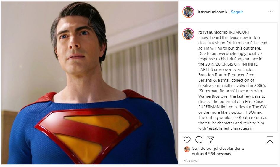 Após encerrar a participação em Legends of Tomorrow e declarar que gostaria de reprisar novamente o papel de Superman, o usuário do Instagram Itsryanunicomb, conhecido por vazamentos das séries da Warner, confirmou que o estúdio está desenvolvendo uma série solo para o personagem.