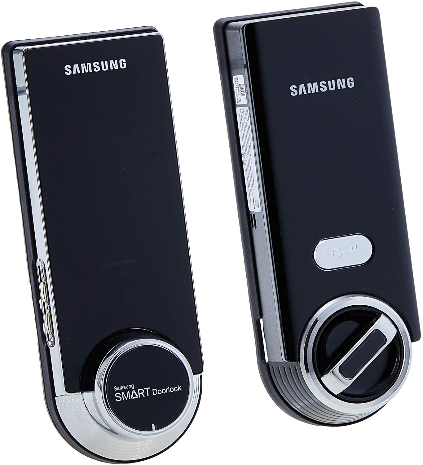 3. Fechadura Digital, Samsung Smart Home: com design slim e elegante, a fechadura digital da Samsung possui acabamento de alto brilho e tela touchscreen. Com configuração através de senha mestra, ela tem funções anti-spy, anti-roubo, não perturbe e abertura por senha de 4 a 12 dígitos ou cartão, adesivo e chaveiro RFID. – https://amzn.to/3boi9kd
