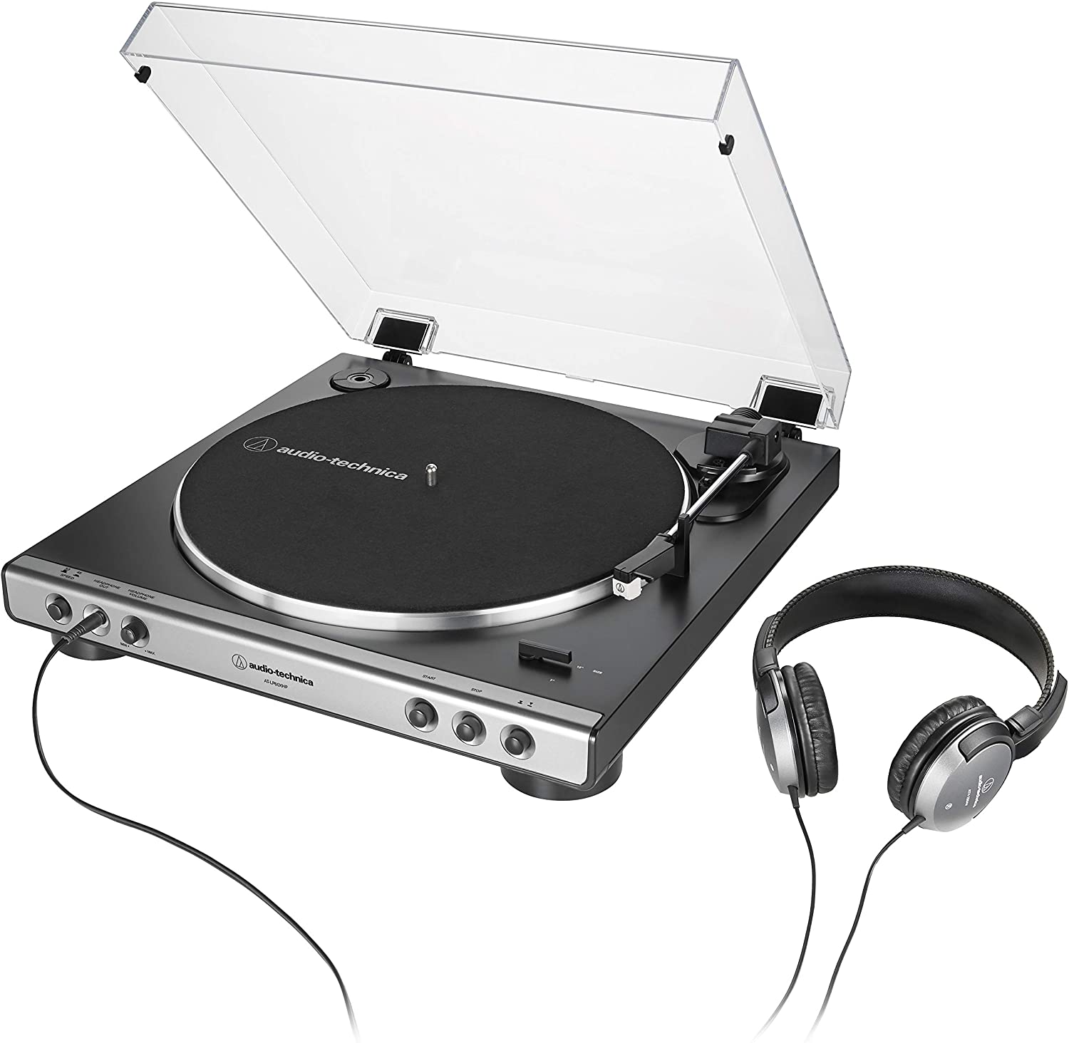 1. Kit Toca-Discos Audio-Technica Automático AT-LP60XHP-GM Grafite Belt-Drive com Fone de Ouvido ATH-250AV: combinando perfeitamente fone de ouvido e toca-discos, esse kit é perfeito para quem deseja curtir os discos de vinil favoritos com muita praticidade! – https://amzn.to/3roXSTN