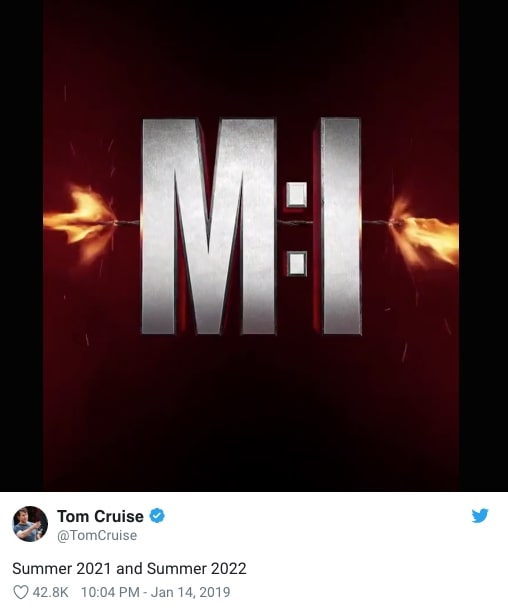Na legenda, Cruise escreveu: “Verão de 2021 e Verão de 2022”, dando indícios concretos o suficiente para levar todos os fãs a entenderem que mais dois filmes da série estão a caminho e devem ser lançados respectivamente por volta do meio de 2021 e 2022 (durante o verão norte-americano).