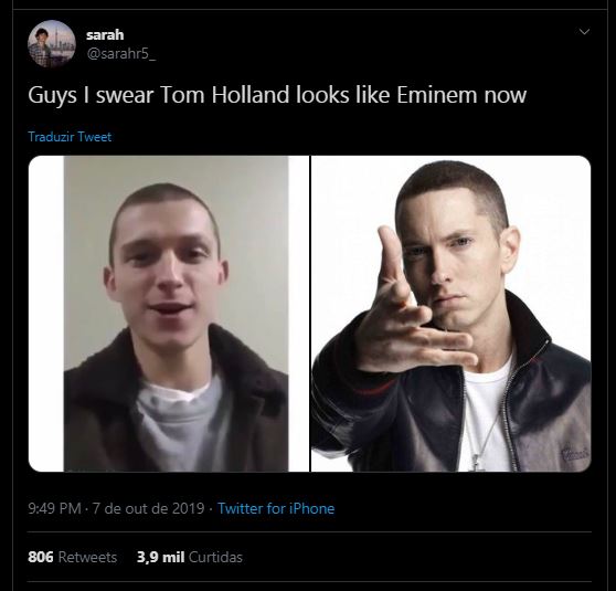 Tradução “Gente eu juro que o Tom Holland parece o Eminem agora”