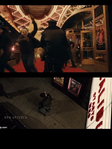 Trata-se do mesmo cinema no qual Thomas e Martha Wayne, os pais de Bruce Wayne, são assassinados em um flashback de Batman vs Superman. Excalibur também está em exibição na cena da produção de 2016.